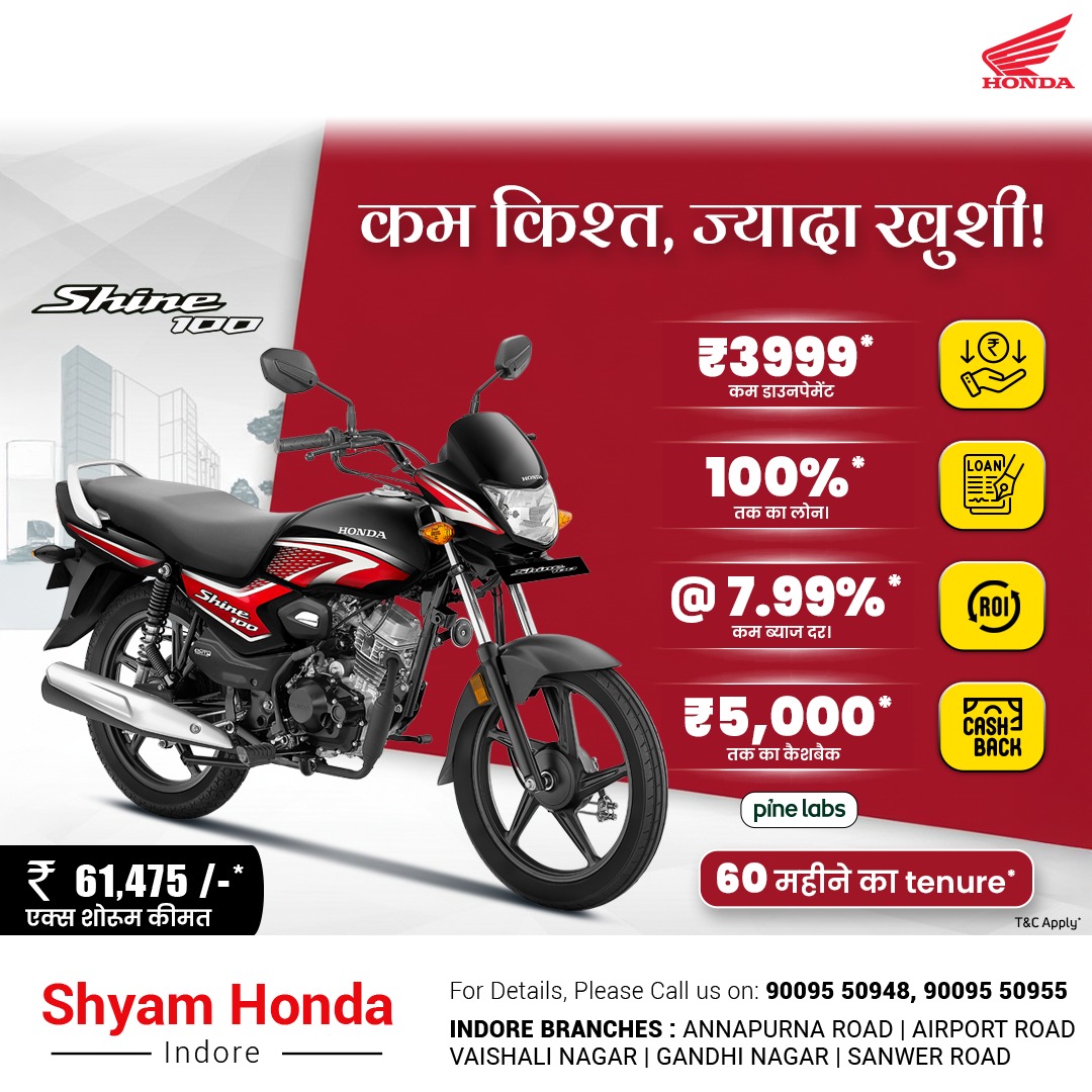 Shine 100 – कम किस्त, ज्यादा खुशी!